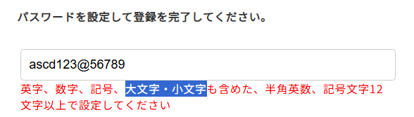サインアップの際に、パスワード設定。大文字小文字混ぜなければだめだったよ