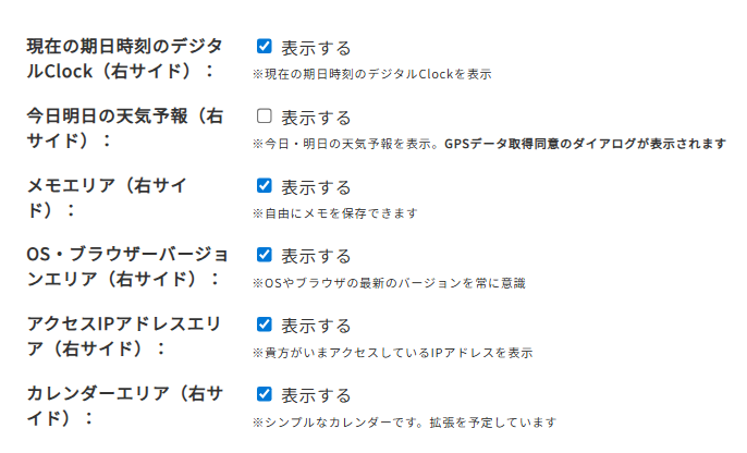 こちら、会員の機能のひとつとして、右サイドバーのウィジェットの表示オンオフできるのだけど、天気予報はここで、デフォルトオフとして用意。位置情報取得のダイアログの件も記載した。