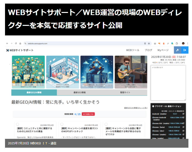 WEBサイト運営の現場目線でWEBディレクターを本気で支援する WEBサイトサポート 公開いたしました