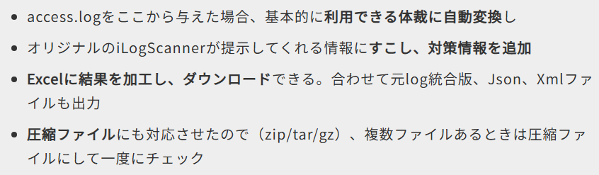「ウェブサイトのログを解析することで攻撃の痕跡を確認でき、一部の痕跡については攻撃が成功した可能性を確認できます。また、SSHやFTPサーバのログに対しても、攻撃と思われる痕跡を検出することができます。」と謳われている。