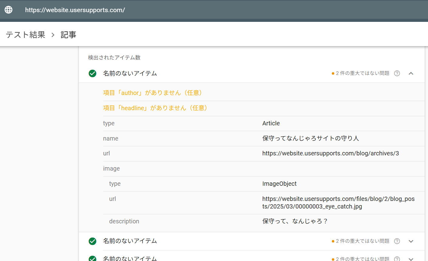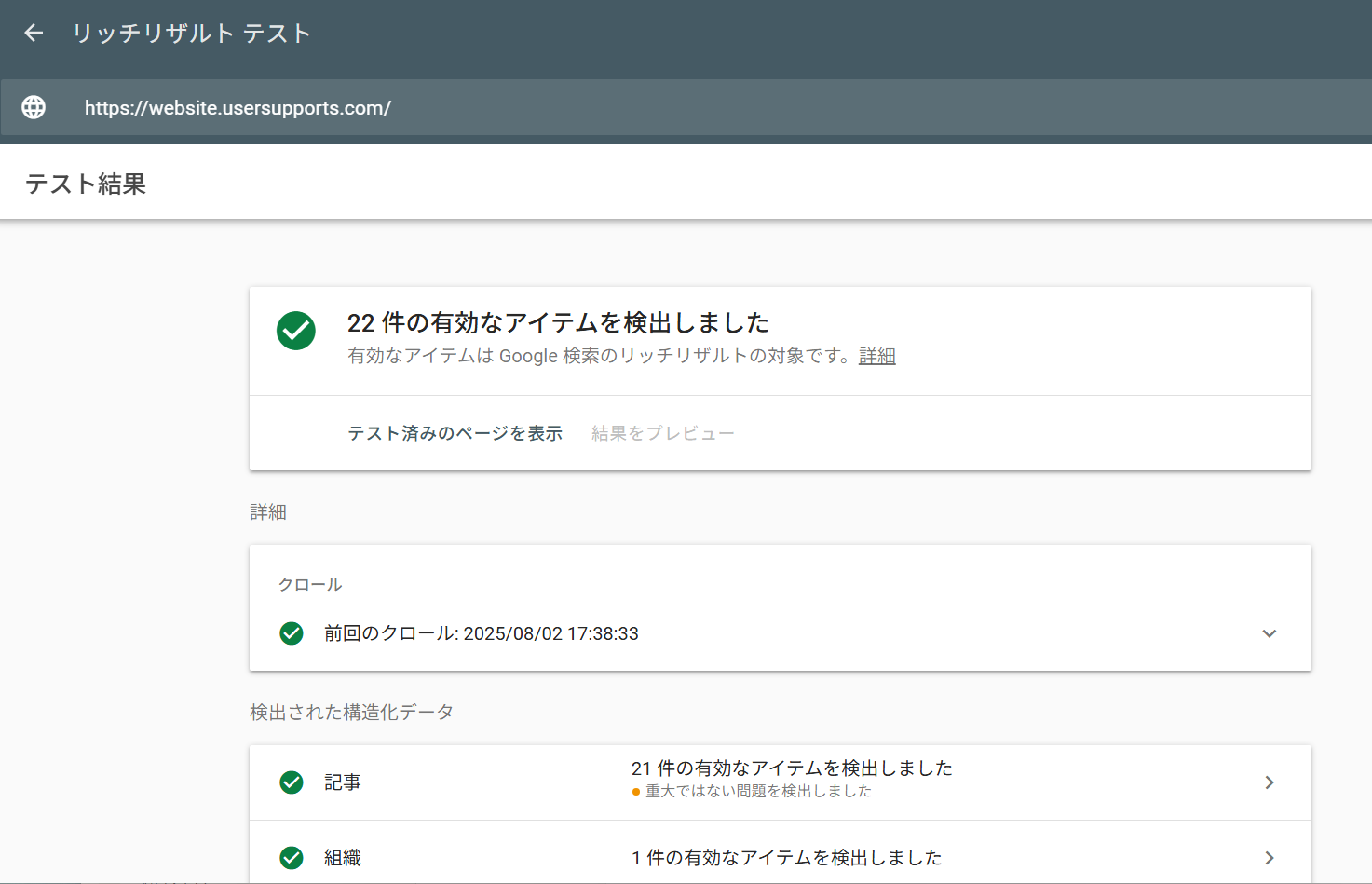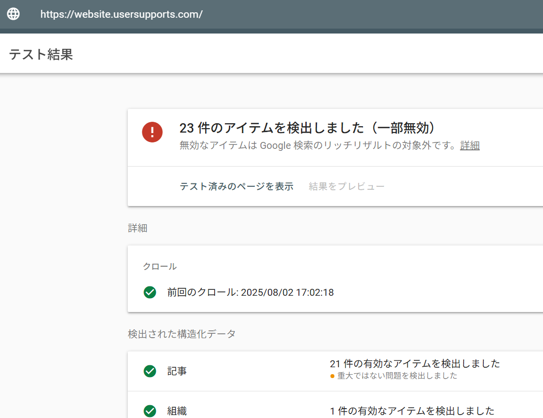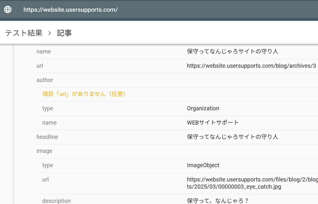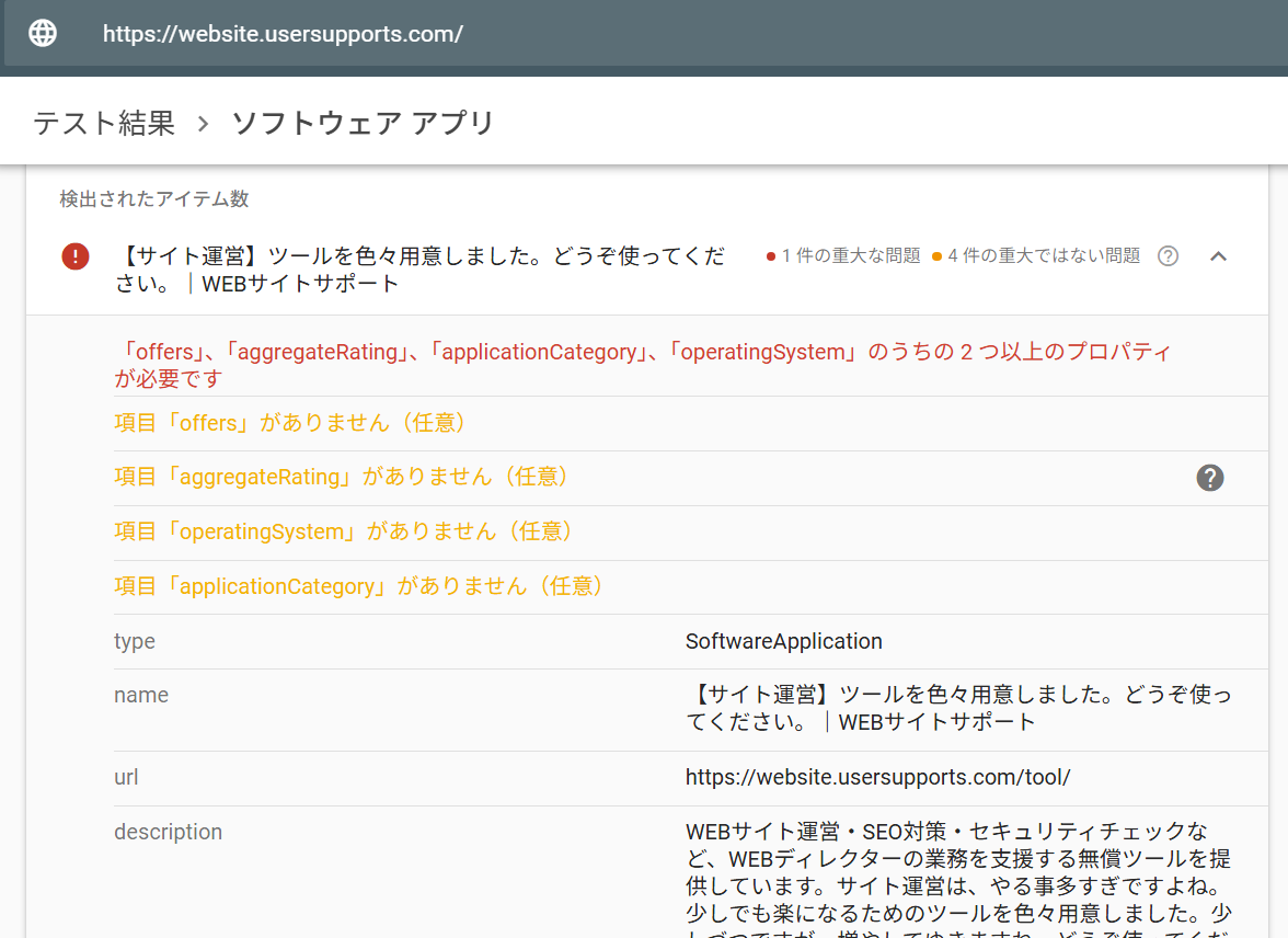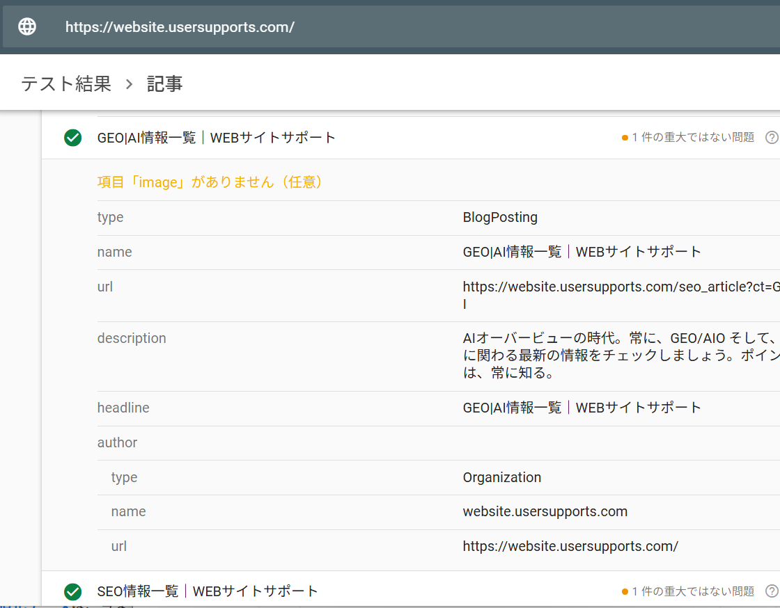 構造化データ出力ツール、リッチリザルトテストを行い結果に対応、精度をあげました! 再生成して利用してくださいね