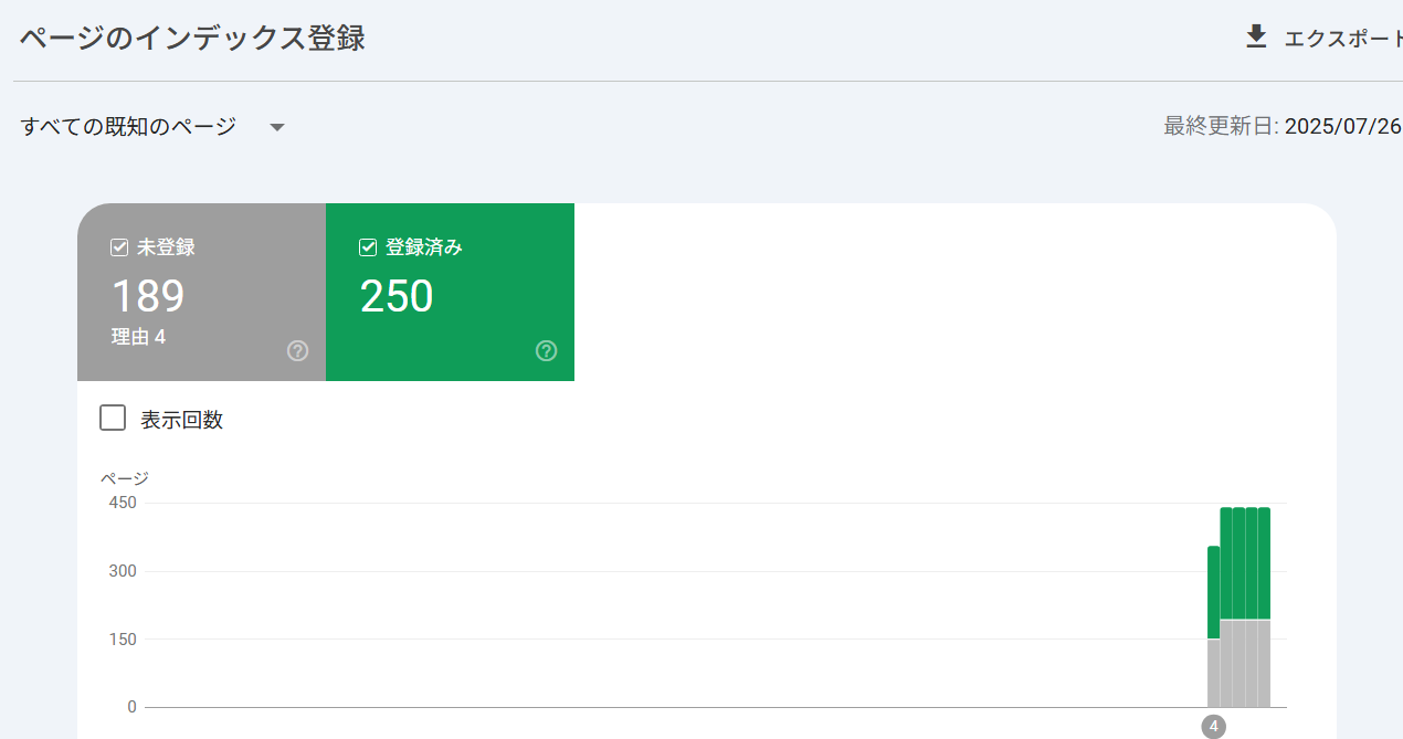 ようやく、Search Consoleにも登録されている様子が、見え始めた。