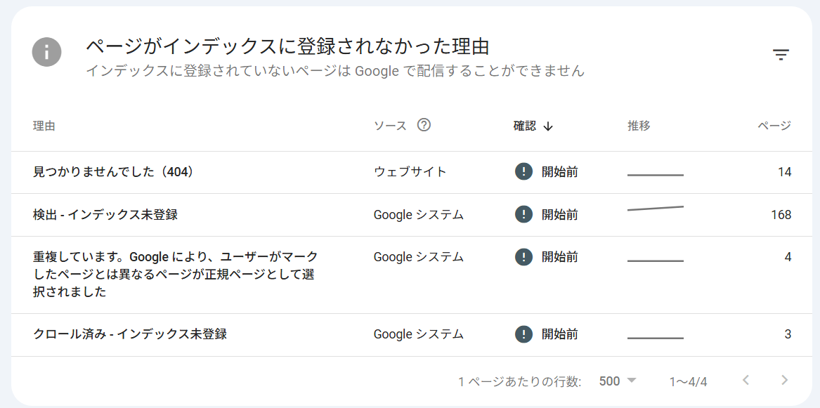 「ページがインデックスに登録されなかった理由」を確認しておく。