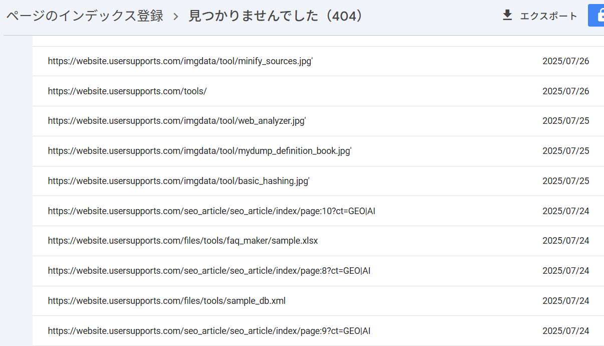 Seach Consoleでリスト部分を 表.csv という名前でエクスポートできる