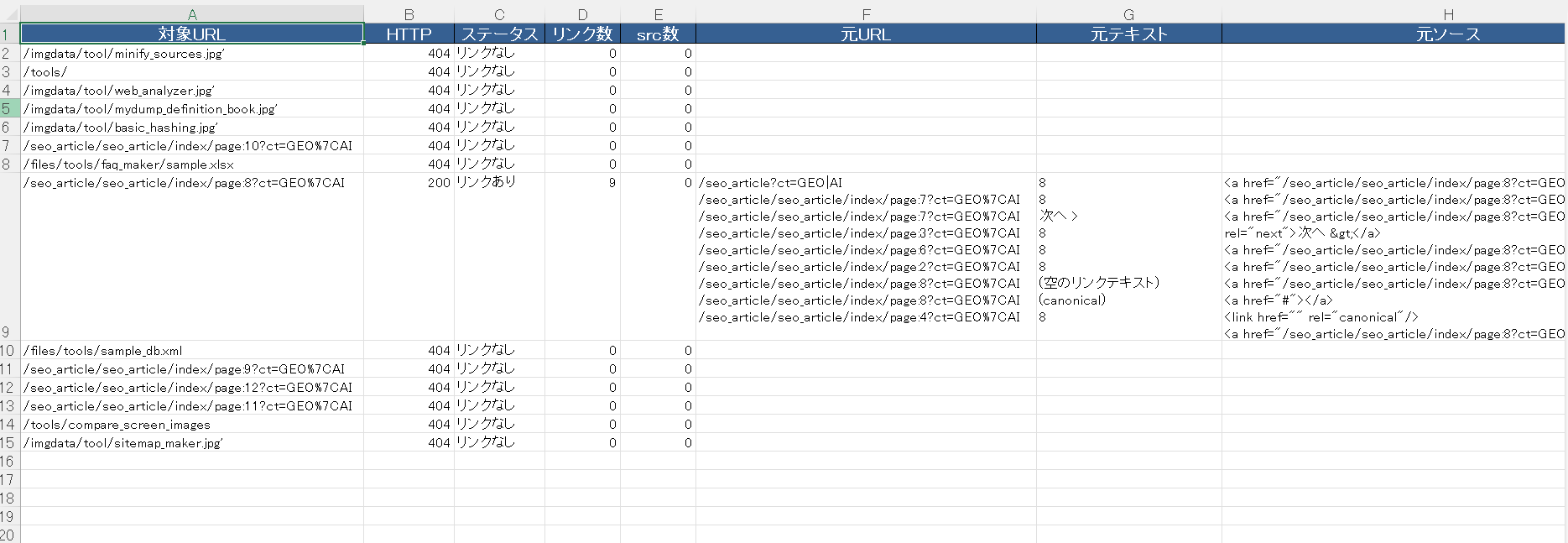 ことごとくがファイルの存在を示す HTTPステータスが200 だし、リンク元もみな確実にあるな。