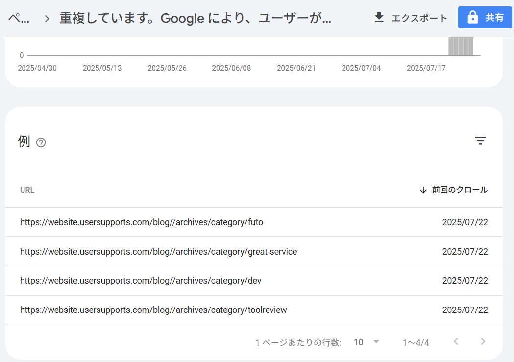 これが一番気になる・・・「重複しています。Google により、ユーザーがマークしたページとは異なるページが正規ページとして選択されました」