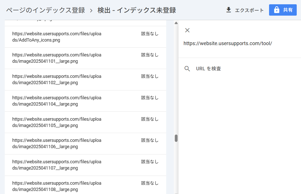 このあたりも、自動化検討したいものだが、画像以外は、さほど多いわけではないので、ひとつひとつ「インデックス登録をリクエスト」を行うえっ! /tool/ が登録されてないのは驚き。一番みんなに利用してもらいたい。役に立つツールをどんどん創ってるのに・・・